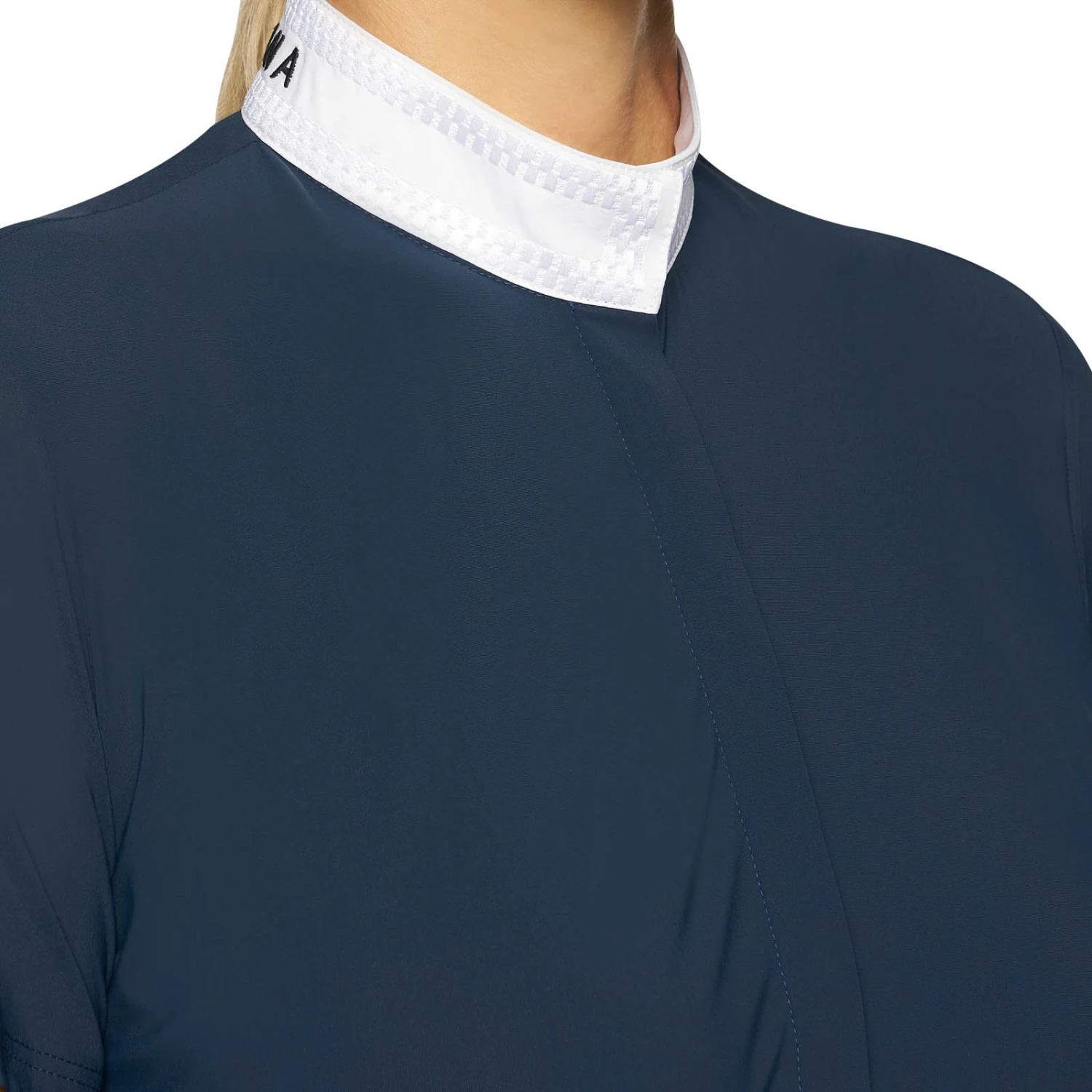 This competition short sleeved shirt made of technical bi-stretch jersey combines comfort, elegance and functionality. Also, its breathable, antibacterial and fast drying fabric is perfect for competition use. This shirt is fastened with a row of buttons covered by a piece of cloth and is made of technical jersey.