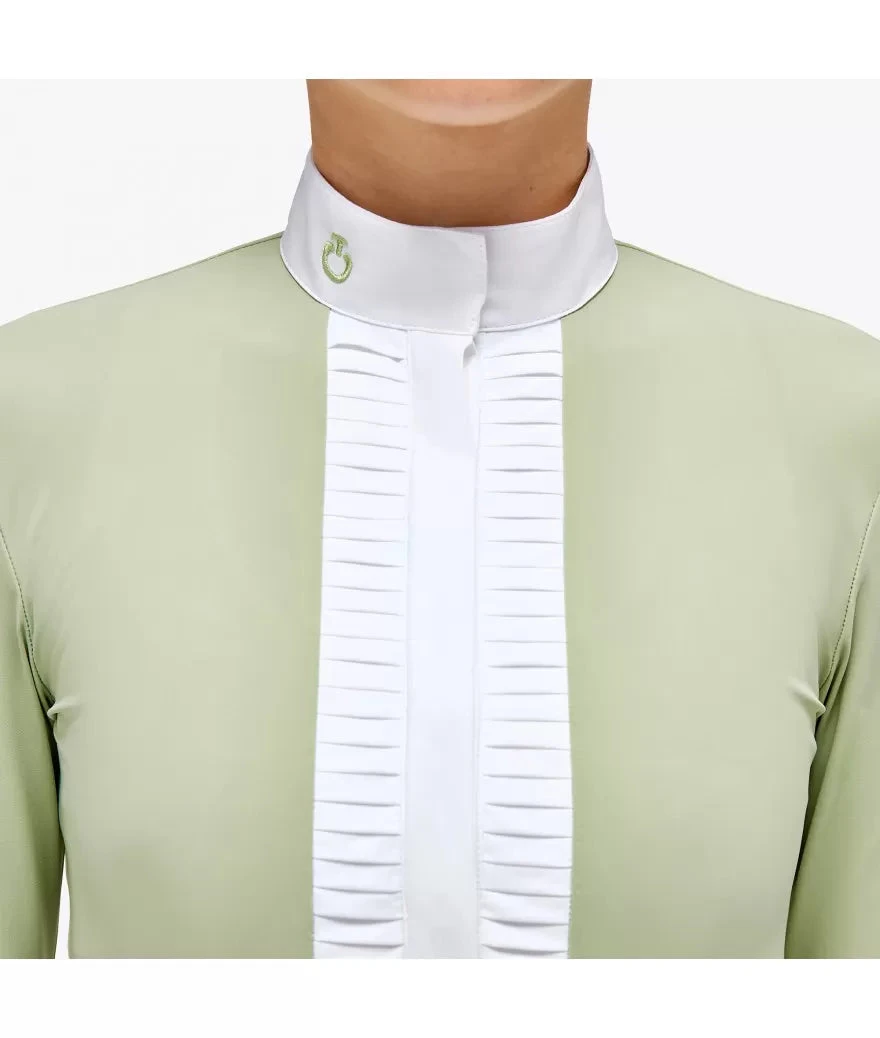 Girls Pleated Competition Long Sleeve Shirt is a gorgeous show shirt for the younger rider with all the classic elegance and total comfort from Cavalleria Toscana. English wrap collar show shirt with quarter length covered placket has an elegant, sophisticated look for any show arena.