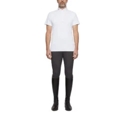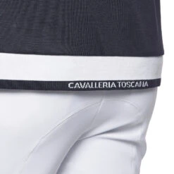 This men’s competition polo in made from technical bi-stretch piqué, a material that combines elegance and functionality. Breathable and fast-drying: it’s a must-have for training and competing. The technical fiber used in the fabric provides an optimal temperature control, ensuring a pleasant feeling on the skin. It’s ideal for sports activities. The short-sleeved polo is refined by a white collar with buttons fastening with tie slide and a small embroidered logo. The look is completed by jacquard knit waistband refined by CT writing.