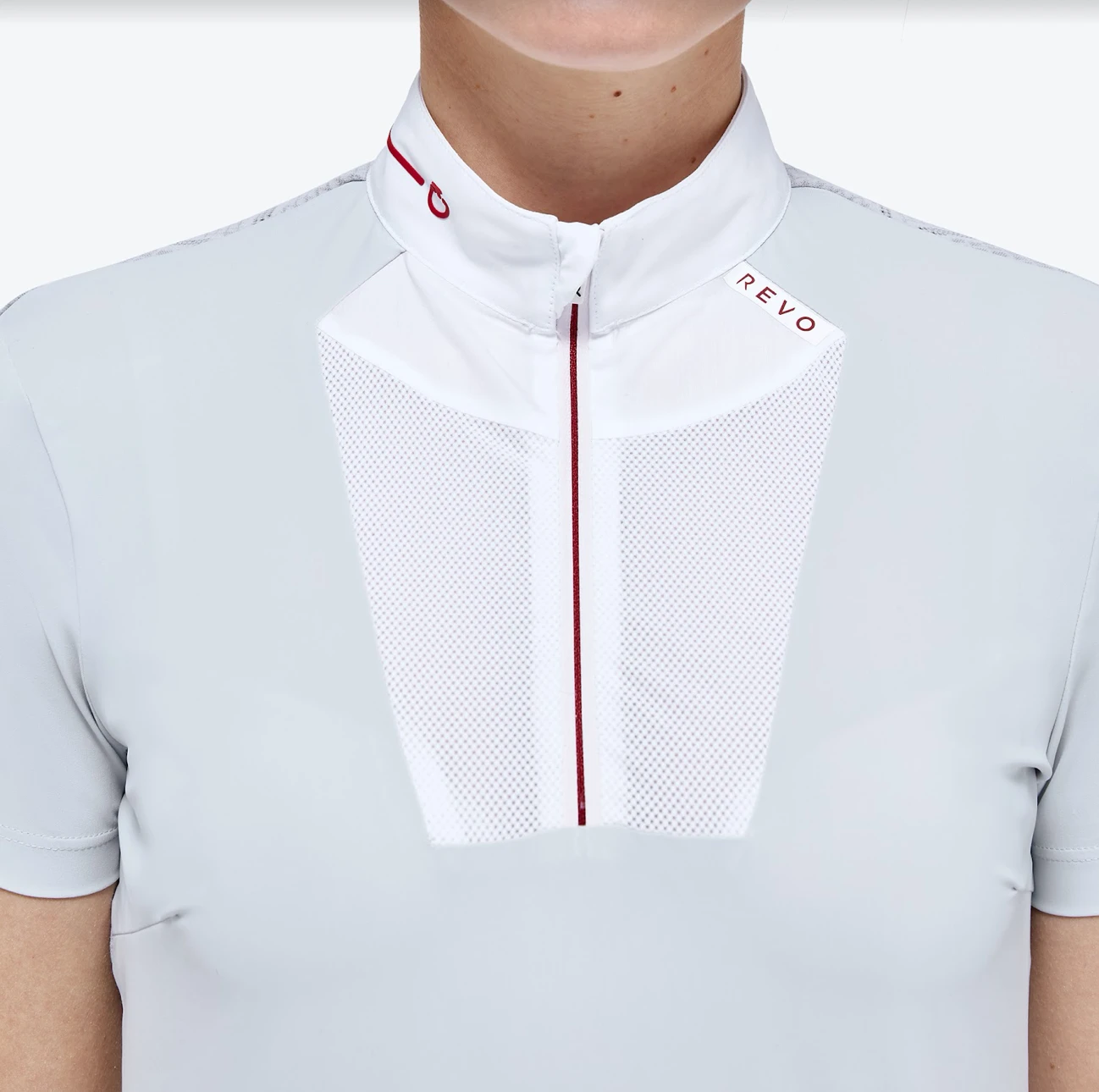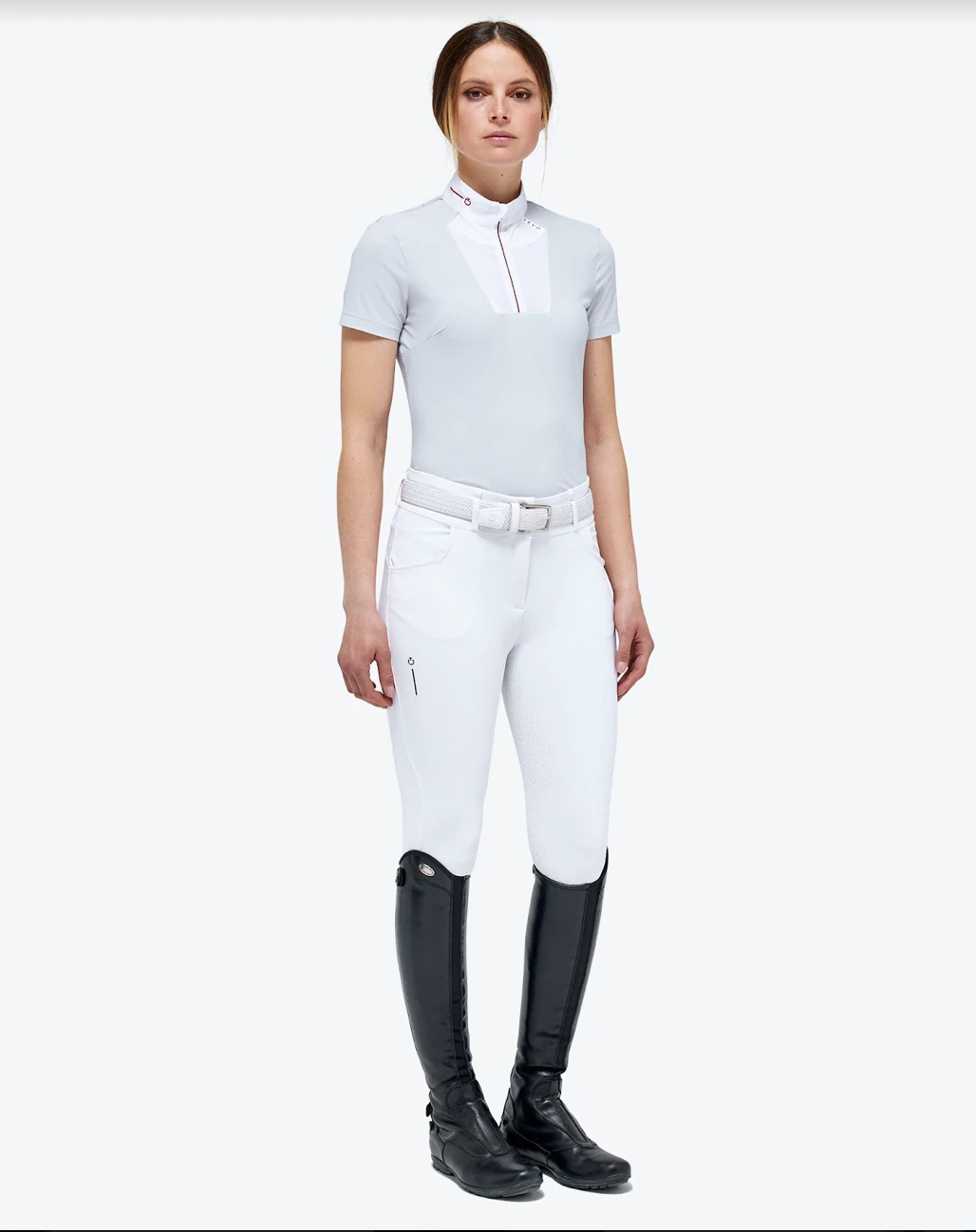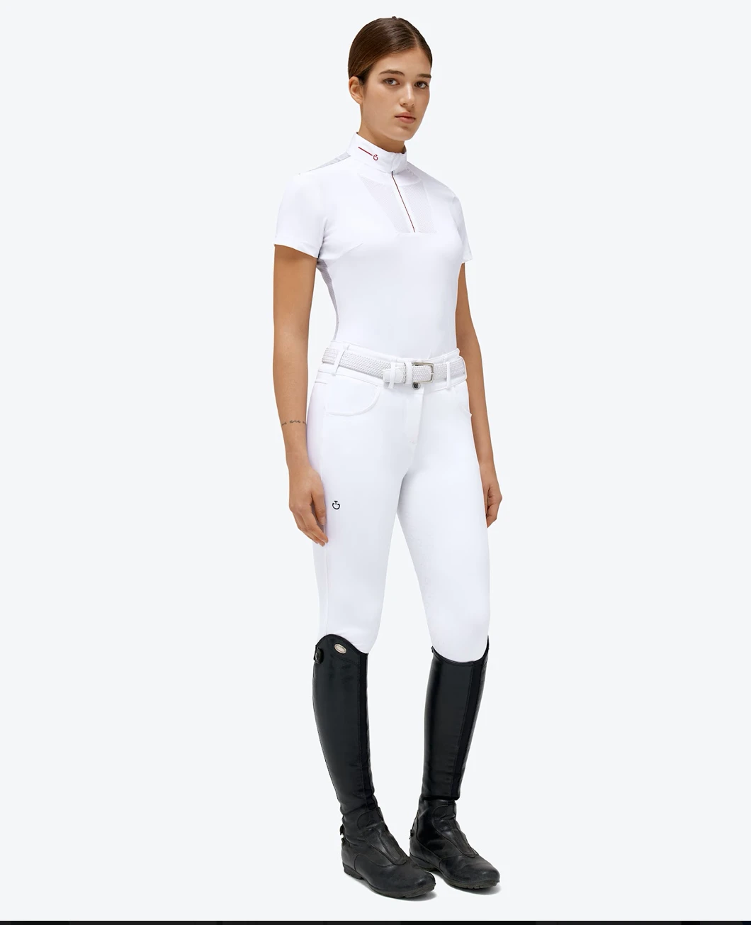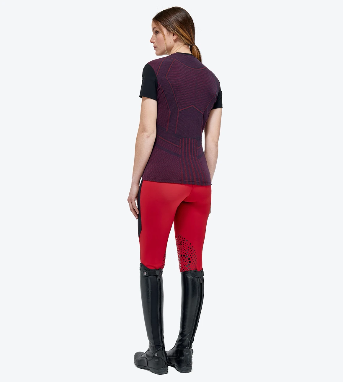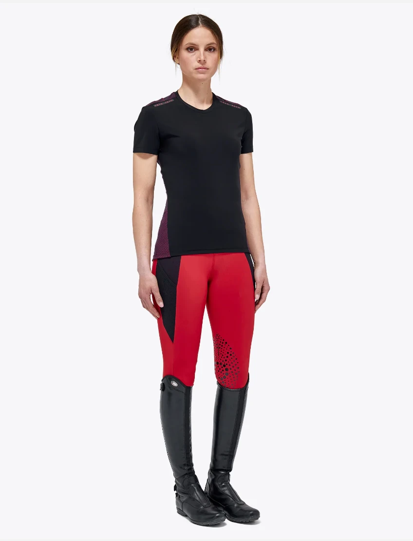 Cavalleria Toscana Women’s REVO Red Label Tech Knit Short Sleeve T-Shirt – Performance and stylish aesthetics come together in this t-shirt, designed for outdoor activities and horseback riding. The model is characterized by a technical knit that lends breathability, absorbs sweat and leaves the skin cool and dry at all times. The slim, versatile line with round neck and short sleeves makes it the perfect underpinning for Cavalleria Toscana jackets and sweatshirts.