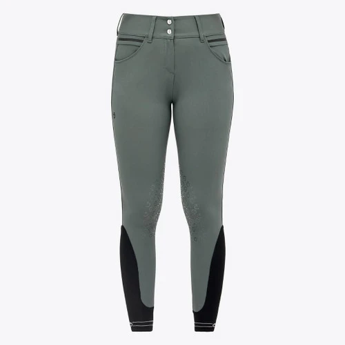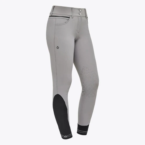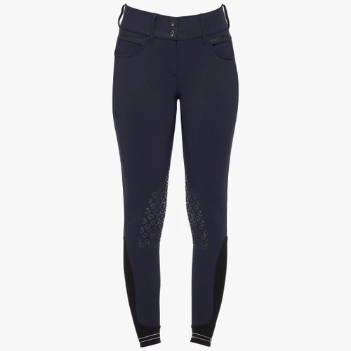 Cavalleria Toscana Silicone Logo Breeches in knee grip style are a riding wardrobe necessity with technical function and classic CT style. Ladies breeches have a high waist and contoured wide waistband that’s designed for flattery and riding comfort. Ergonomic seams and stretch socks ensure an outstanding fit.