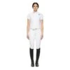 Cavalleria Toscana presents this competition shirt which combines balanced proportions and attention to detail. In breathable jersey, this style stands out for its elegant slim fit and bib with contrast piping details, elongating and complementing the silhouette. The poplin collar with an embroidered CT logo and the branded button fastening complete the look.