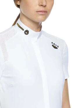 Cavalleria Toscana presents this competition shirt which combines balanced proportions and attention to detail. In breathable jersey, this style stands out for its elegant slim fit and bib with contrast piping details, elongating and complementing the silhouette. The poplin collar with an embroidered CT logo and the branded button fastening complete the look.