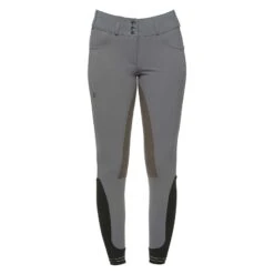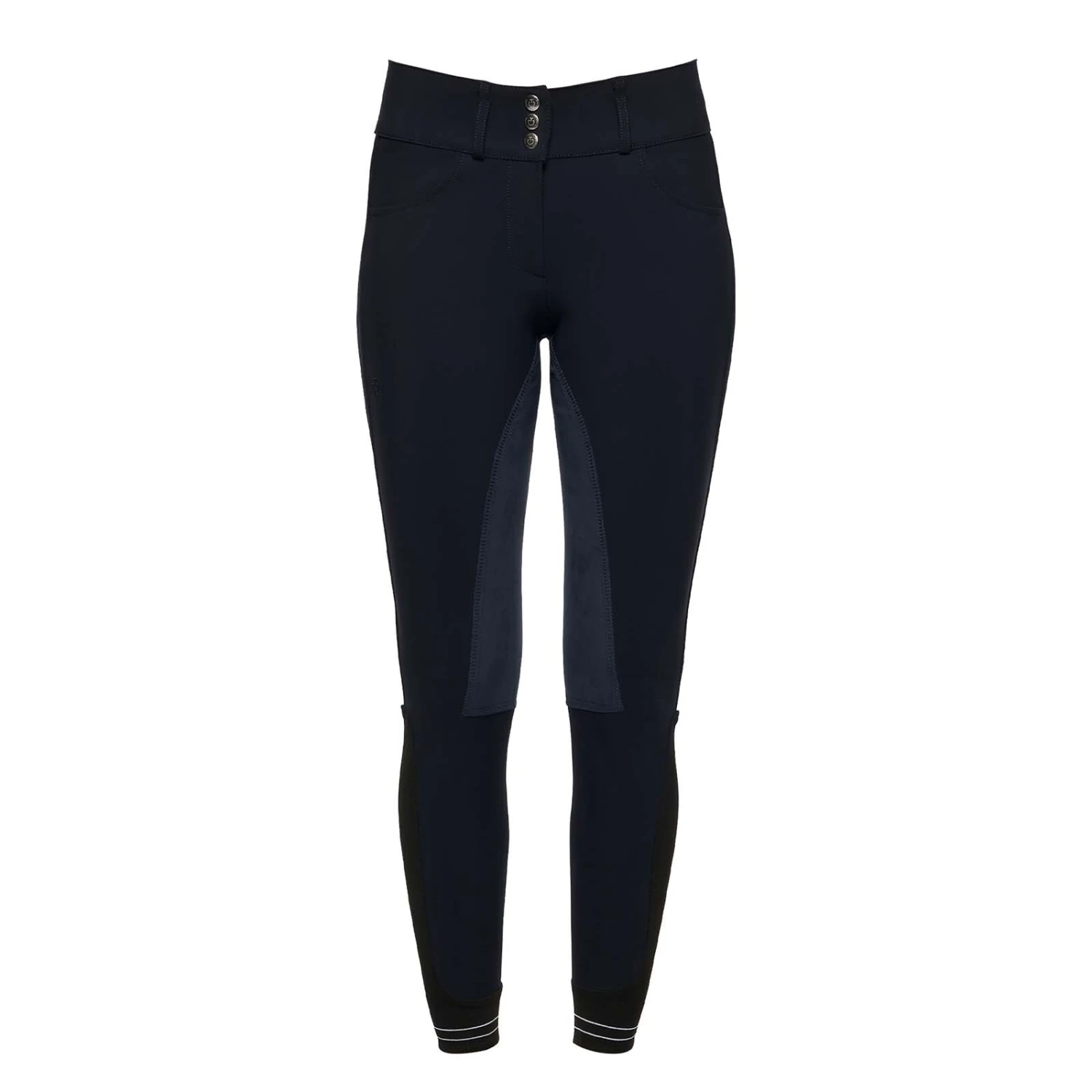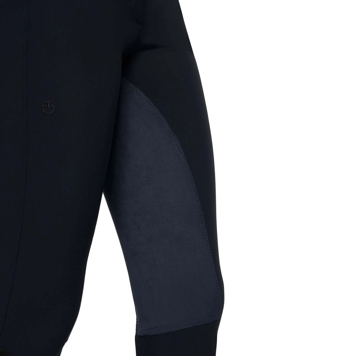 The 4-way stretch technical jersey used for this riding breeches provides maximum breathability and freedom of movements: this fabric adheres perfectly to your body, without constriction. The high-waisted band comes with an internal grip, wich provides the right fit over your shirt. It also features wide belt loops to accomodate your riding belt. the traditional alcantara fabric provides the right fit, while the stretch-knit socks fit comfortably under your boots. The easy care material provides antibacterial properties and UV protection, ideal for your summer training.