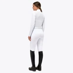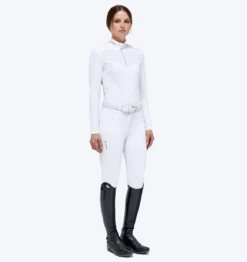 The Cavalleria Toscana Jersey Zip Competition Polo with Jersey Mesh Inserts is the perfect choice for equestrian enthusiasts looking for a comfortable and functional garment. Crafted from piqué and technical knit, this polo comes in a variety of spring pastel colors. Thanks to its bi-stretch technology, it is easily adaptable to body movements, while its easy care composition makes it easy to wash and maintain. Furthermore, this polo shirt is breathable and fast-drying, ensuring optimal comfort and performance on the saddle.