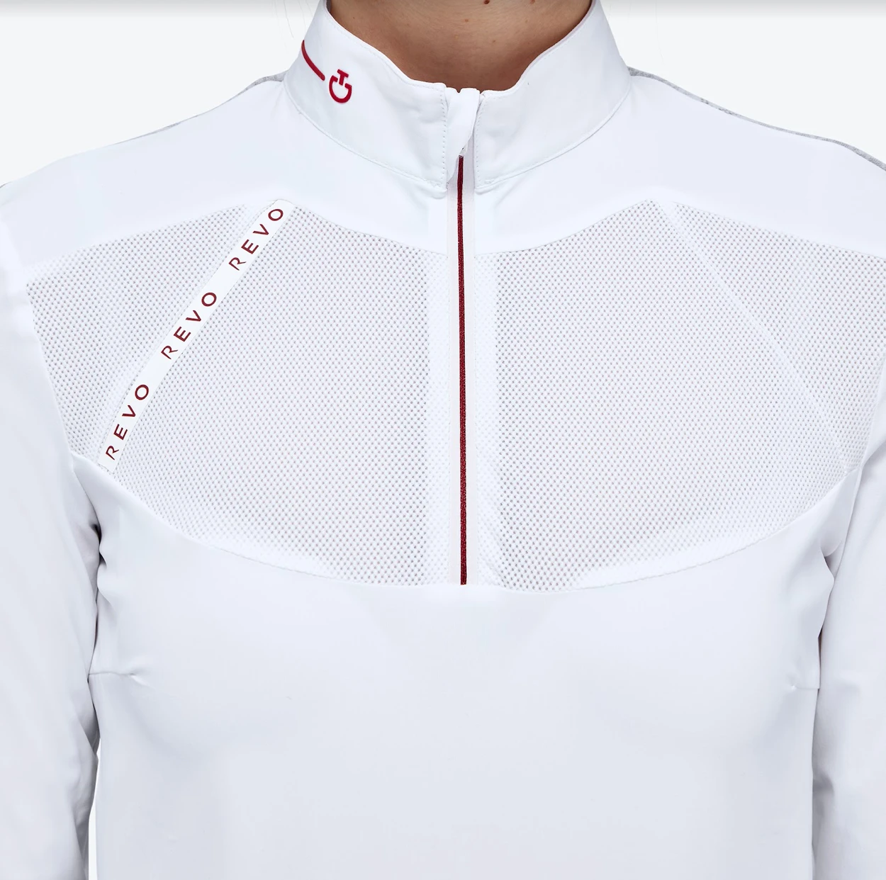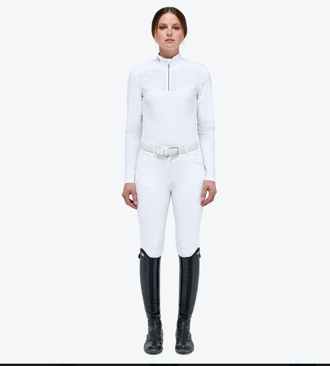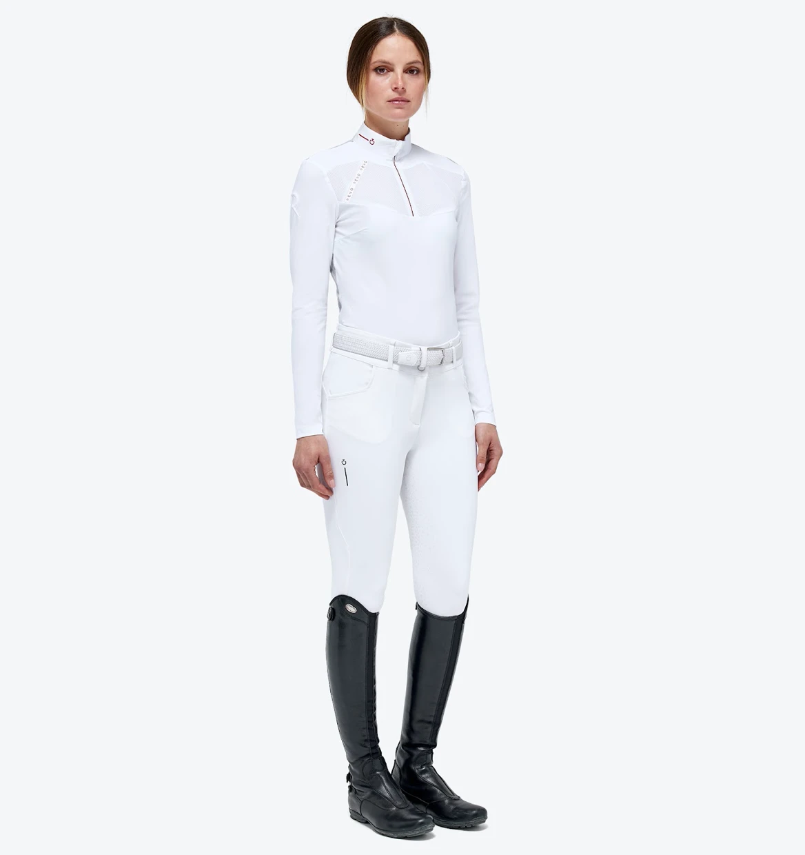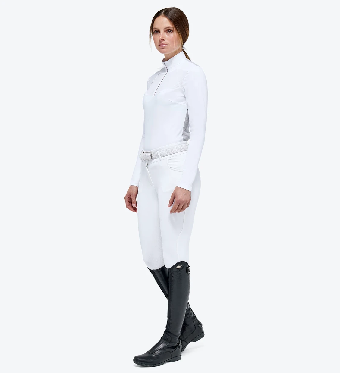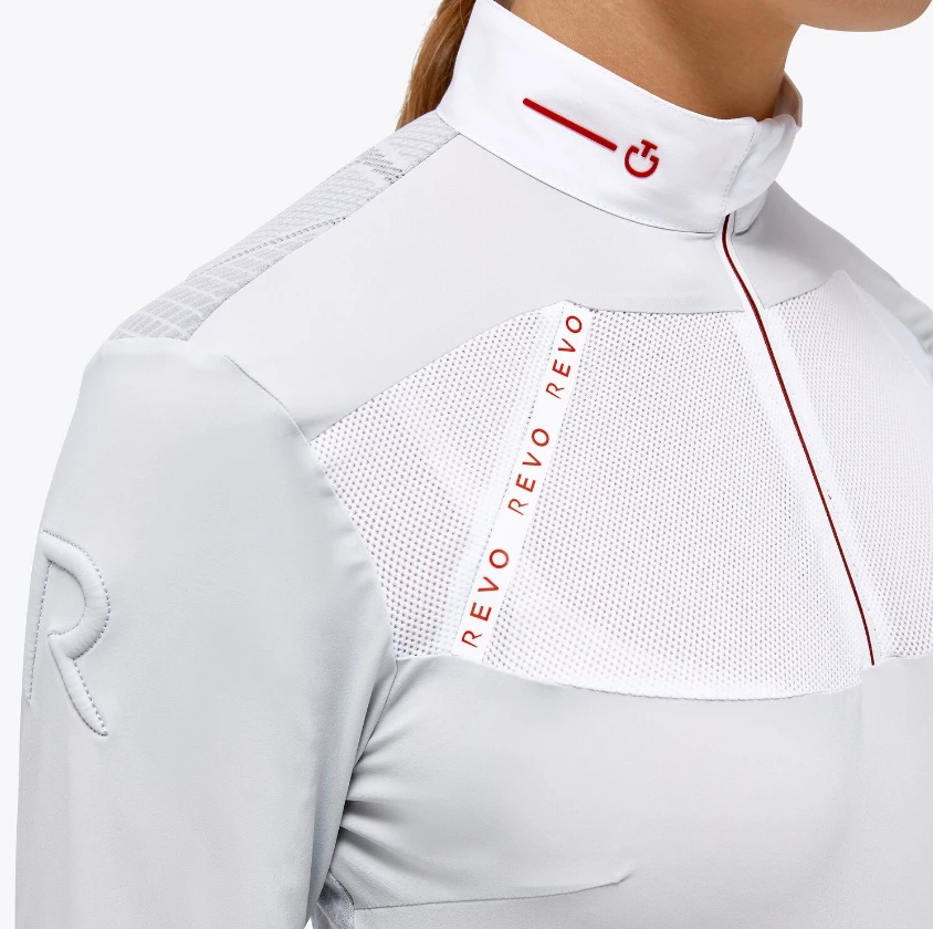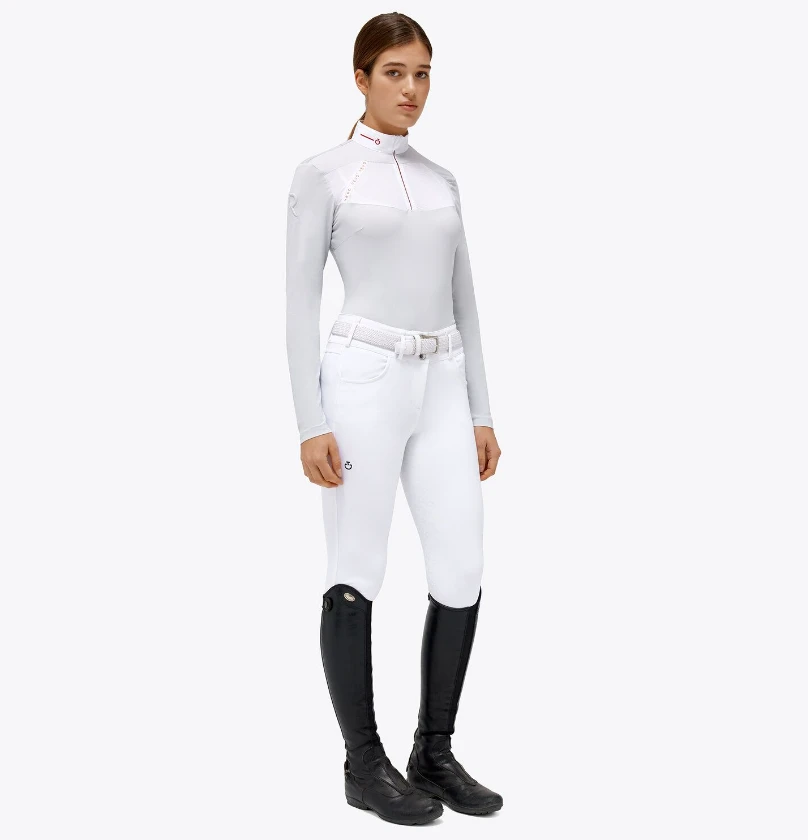 Long Sleeve Zip Show Polo – This performance polo shirt is designed to offer comfort and protection during shows. The model is made of REVO jersey mesh with details on the front and back that define the silhouette and offer excellent breathability. Completing the look is the high collar decorated with elegant CT embroidery and the quarter-zip fastening with a zip set in heat-activated seam tape.