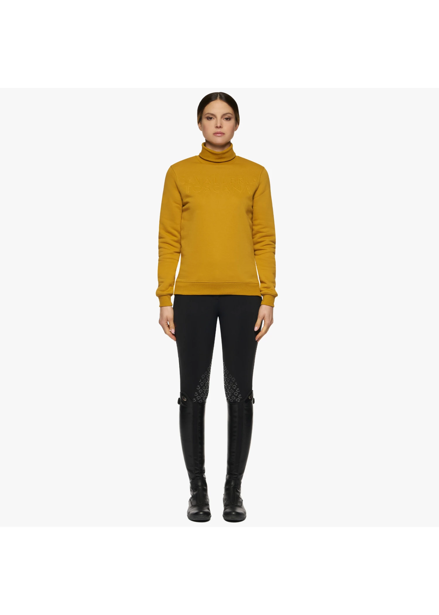 Women’s Cavalleria Toscana Embossed Turtleneck Pullover is comfortable and relaxed but with high end style. Women’s warm sweatshirt with high-low hem and embossed CT branding is perfect for leisure and sportswear. The Embossed Turtleneck Pullover is a breathable, easy care cotton blend that is softly brushed inside. The Cavalleria Toscana colors are the perfect seasonal shades to add a little out-of-the-ordinary Italian style to your wardrobe.