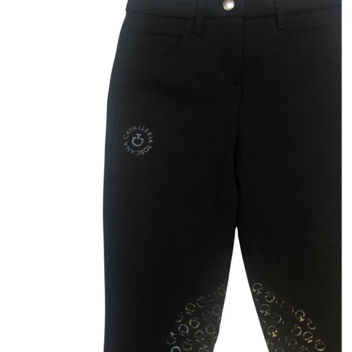 Cavalleria Toscana Girls Orbit Logo Breeches have a luxury look and feel for young riders with busy training schedules. Designed for performance as well as high end style, these knee grip riding breeches for girls feature a stylish CT Orbit logo at the upper right thigh. The textured heat printed image has the CT logo circled with the Cavalleria Toscana name.