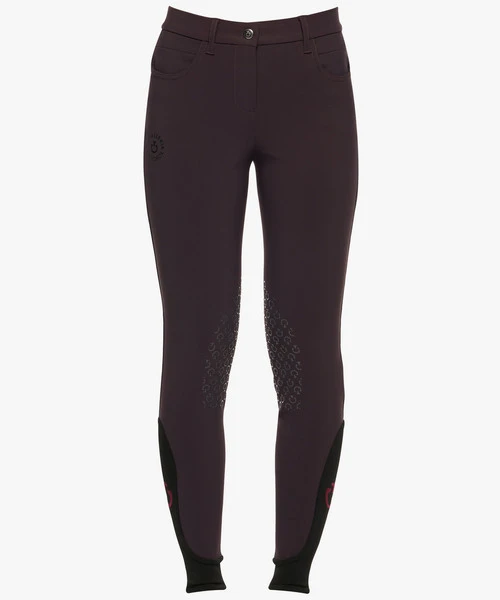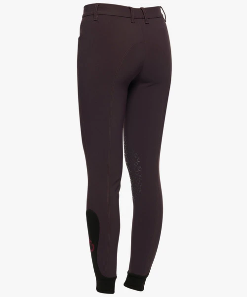 Girls Orbit Logo Grip Breeches have a classic euro seat, CT print silicone knees, and a stretch knit lower leg. Kids Cavalleria Toscana hunter jumper breeches in Black or Dark Purple are made with premium technical fabric. The breeches are antimicrobial, wicking, breathable, and quick drying. An elasticated lining inside the contoured waistband helps keep shirts in place. Cavalleria Toscana Girls Orbit Logo Breeches are designed and made in Italy.