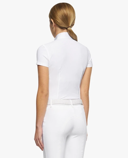 Cavalleria Toscana Short Sleeve Pleated Competition Shirt gives girls the comfort of technical fabric that is lightweight, stretchy, moisture wicking, and fast drying. It keeps odors in check so the shirt stays fresher on long show days. Girls Cavalleria Toscana equestrian show shirt has a slim fit, refined look, and silky feel that’s perfect for young riders who want to look and feel their best while competing.