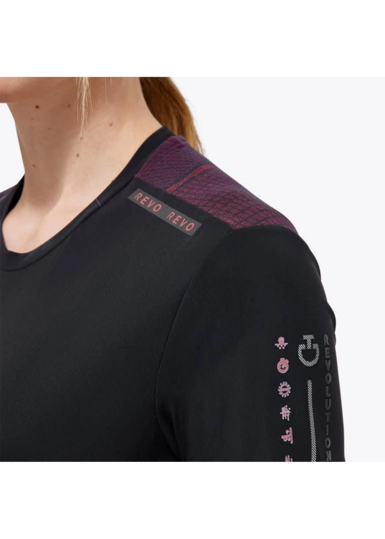 The slim, versatile line with round neck and short sleeves makes it the perfect underpinning for both show jackets and sweatshirts.